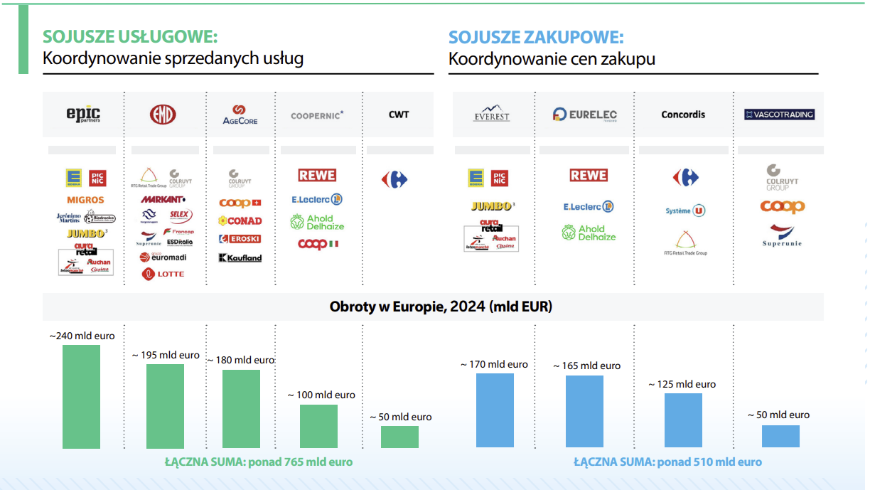 Detaliczne sojusze zakupowe coraz częściej działają jak ponadnarodowe centra władzy rynkowejzdolne kształtować cenydecydować o dostępie do półki i warunkach konkurencji w wielu krajach równocześnieGdy kilka aliansów skupia w swoich rękach tak dużą siłę zakupowąstawką staje się już nie tylko los pojedynczych dostawcówlecz równowaga całego europejskiego rynku żywności.